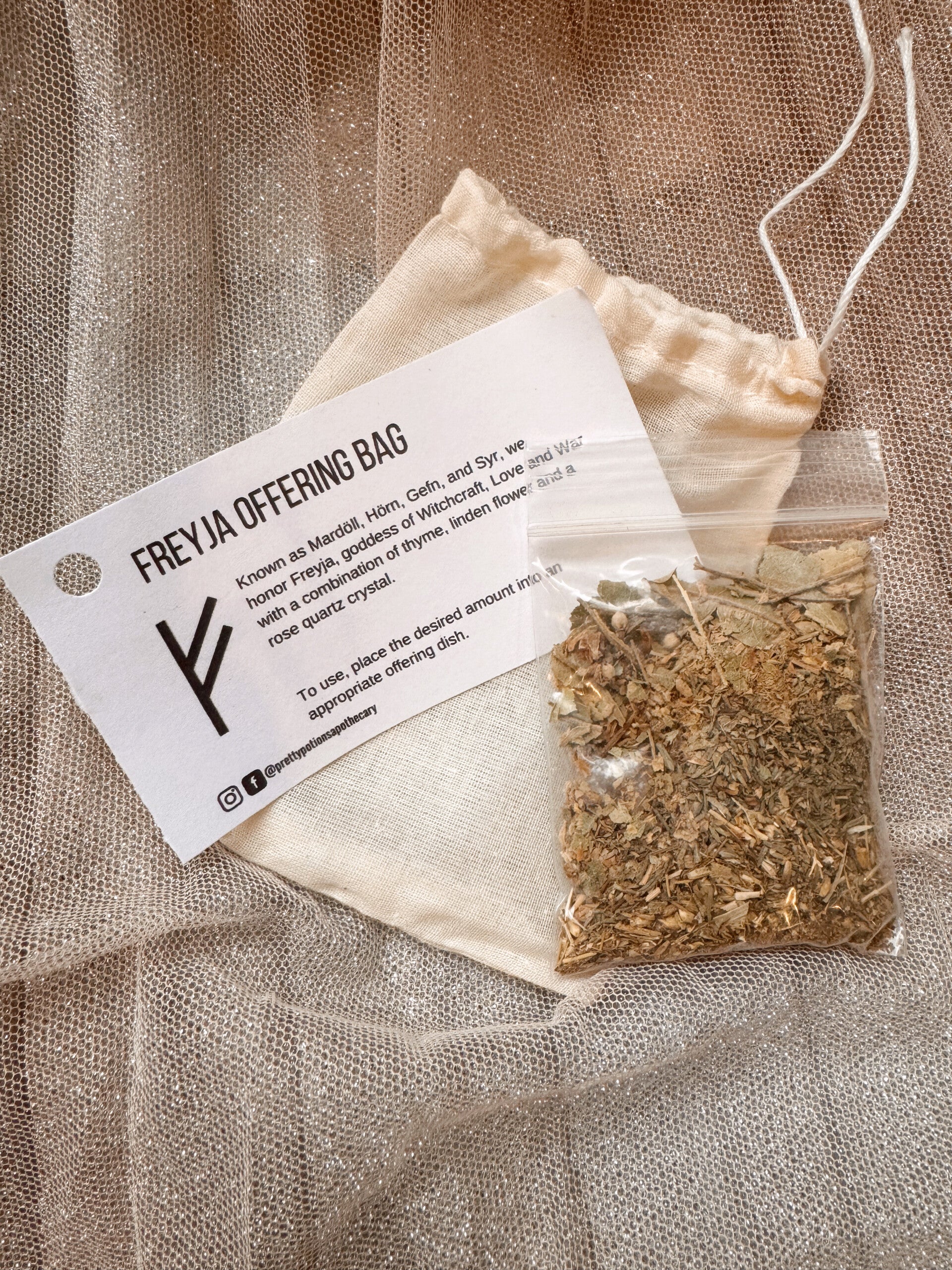 These bags can be used as an offering to your goddess, to burn as incense or to dress a candle, or even just to carry with you.